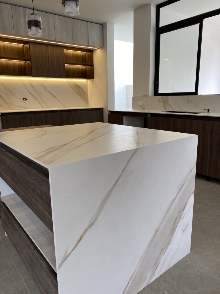 Implementación de cuarzo, granito, piedra sintetizada, etc