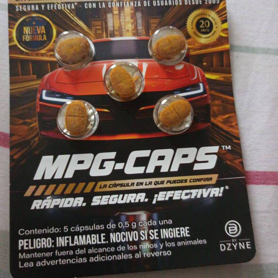 MPG-CAPS ES UNA FORMULA PARA AHORRAR COMBUSTIBLE TAMBIEN TIENE LOS SIGUIENTES BENEFICIOS COMO LIMPIEZA DE INYECTORES, DA MAS POTENCIA AL MOTOR, REDUCE LA EMISIONES TOXICAS AYUDANDO A DISMINUIR LA CONTAMINACION AMBIENTAL , DA MAS VIDA UTIL AL MOTOR, SUBE EL OCTANAJE ALA GASOÑINA O DIESEL PERMITIENDO TENER EL AHORRO DE DINERO EN COMBUSTIBLES.