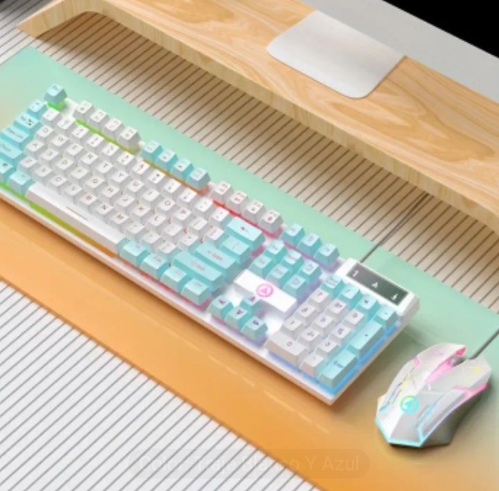 Combo de teclado y mouse con luz LED con cable, sus teclas son silenciosas
